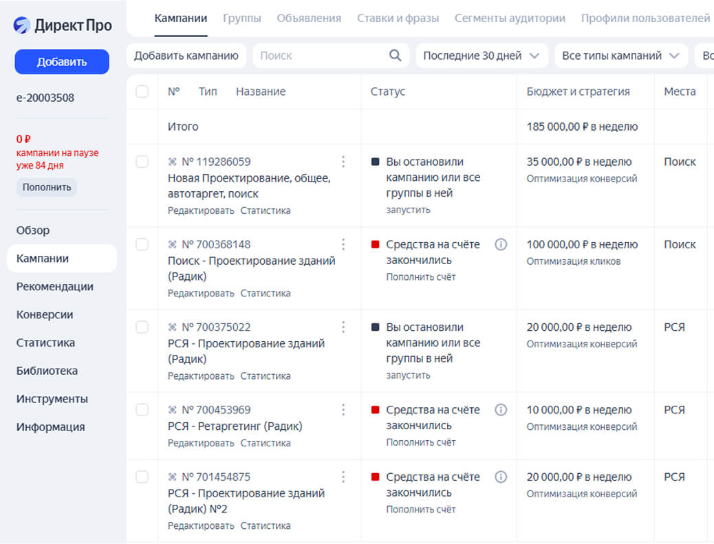 Для успешного функционирования рекламных кампаний в сети важно их разделить на показ в поисковой выдаче и в рекламной сети Яндекса и контекстно-медийной сети Google для того, чтобы: