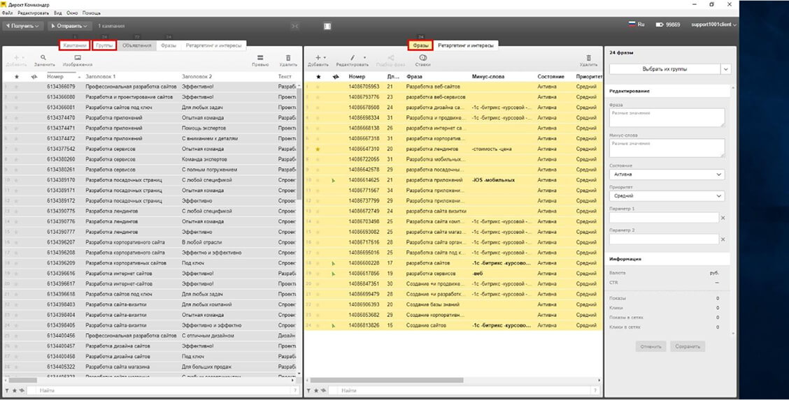 Главная роль в успехе рекламных кампаний напрямую зависит от правильности подобранных ключевых фраз, поэтому необходимо: